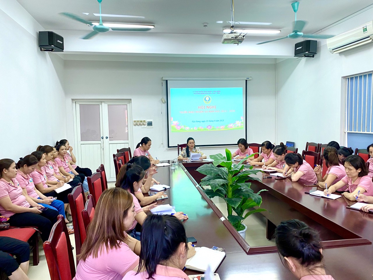 Vào hồi 17h00 thứ Năm, ngày 31/8/2023, trường MN Hoa Thuỷ Tiên đã tổ chức Hội nghị triển khai nhiệm vụ năm học 2023-2024 tới toàn thể CBGVNV, đồng thời kết hợp tổ chức chia tay 02 đồng chí giáo viên chuyển công tác.