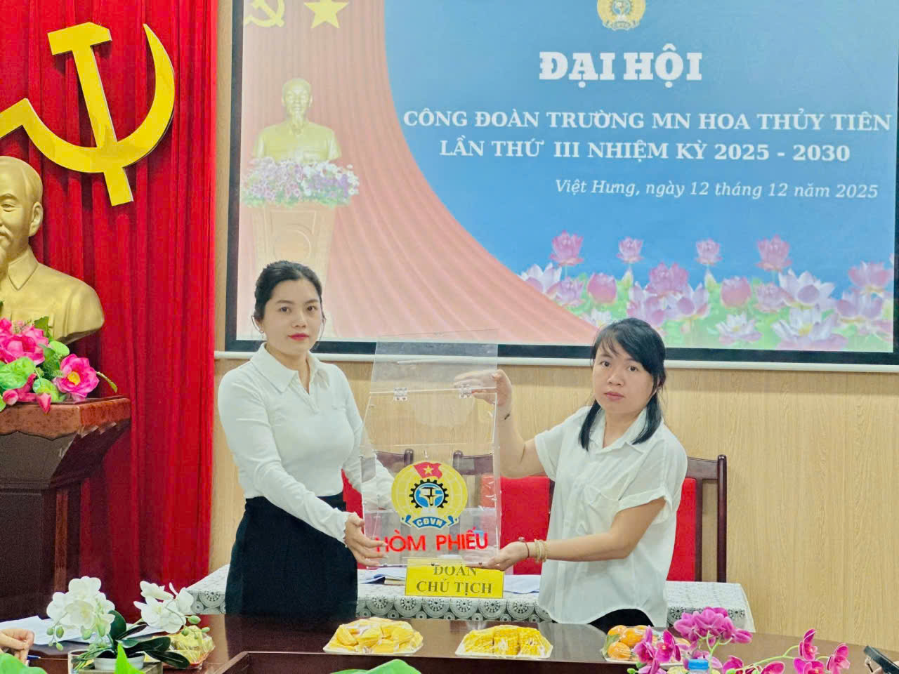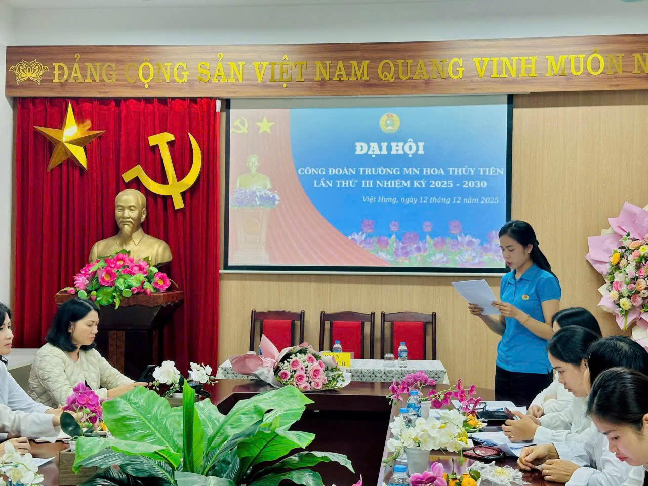 🍀 Chiều ngày 12/12/2025, Công đoàn Trường MN Hoa Thủy Tiên đã long trọng tổ chức Đại hội Công đoàn lần thứ III, nhằm đánh giá kết quả hoạt động công đoàn trong nhiệm kỳ 2023 – 2025 và đề ra phương hướng, nhiệm vụ cho nhiệm kỳ 2025 – 2030.