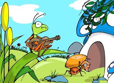Ngày hè đỏ lửa, ve sầu lười biếng nằm duỗi chân dưới tán cây. Thỉnh thoảng ve sầu lại nhấm nháp một giọt mật ong thượng hạng, lim dim hưởng thụ thì bất chợt thấy bác kiến thân thể nhớp nháp mồ hôi hì hục vác một hạt gạo to tướng trên vai chậm chạp lê bước ngang qua.