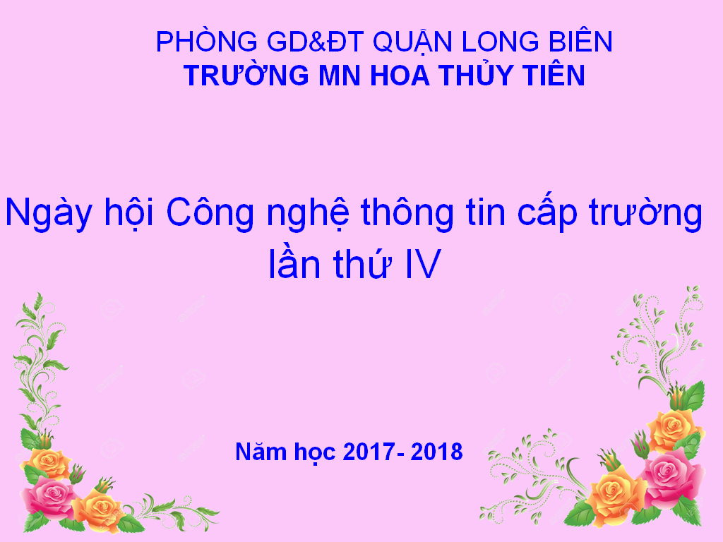 Ngày 30 tháng 1 năm 2018, Trường mầm non Hoa Thủy Tiên tổ chức Ngày hội Công nghệ thông tin cấp trường lần thứ IV năm học 2017-2018 với 39 bài dự thi, giúp tập thể giáo viên- nhân viên trong nhà trường tự học hỏi trau dồi kinh nghiệm. Qua hội thi CBGVNVtrong nhà trường đã tích cực hào hứng tham gia, đã có những bài giảng E- learning thật sự tâm huyết với phần thuyết minh sâu sắc ứng dụng nhiều trong các tiết dạy, lại có những giáo án điện tử hay và sáng tạo