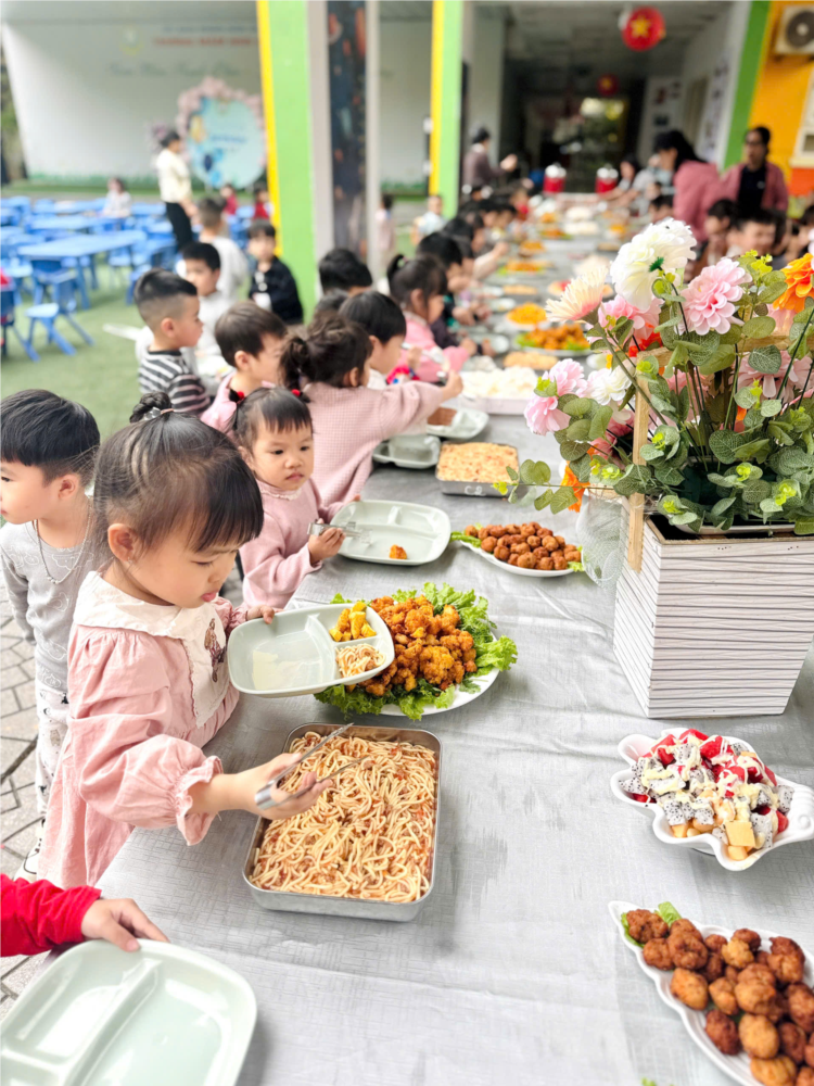 Thông qua hoạt động này, các bé không chỉ được thưởng thức những món ăn ngon mà còn được trải nghiệm kỹ năng giao tiếp, chia sẻ và tham gia các hoạt động tập thể đầy vui nhộn.