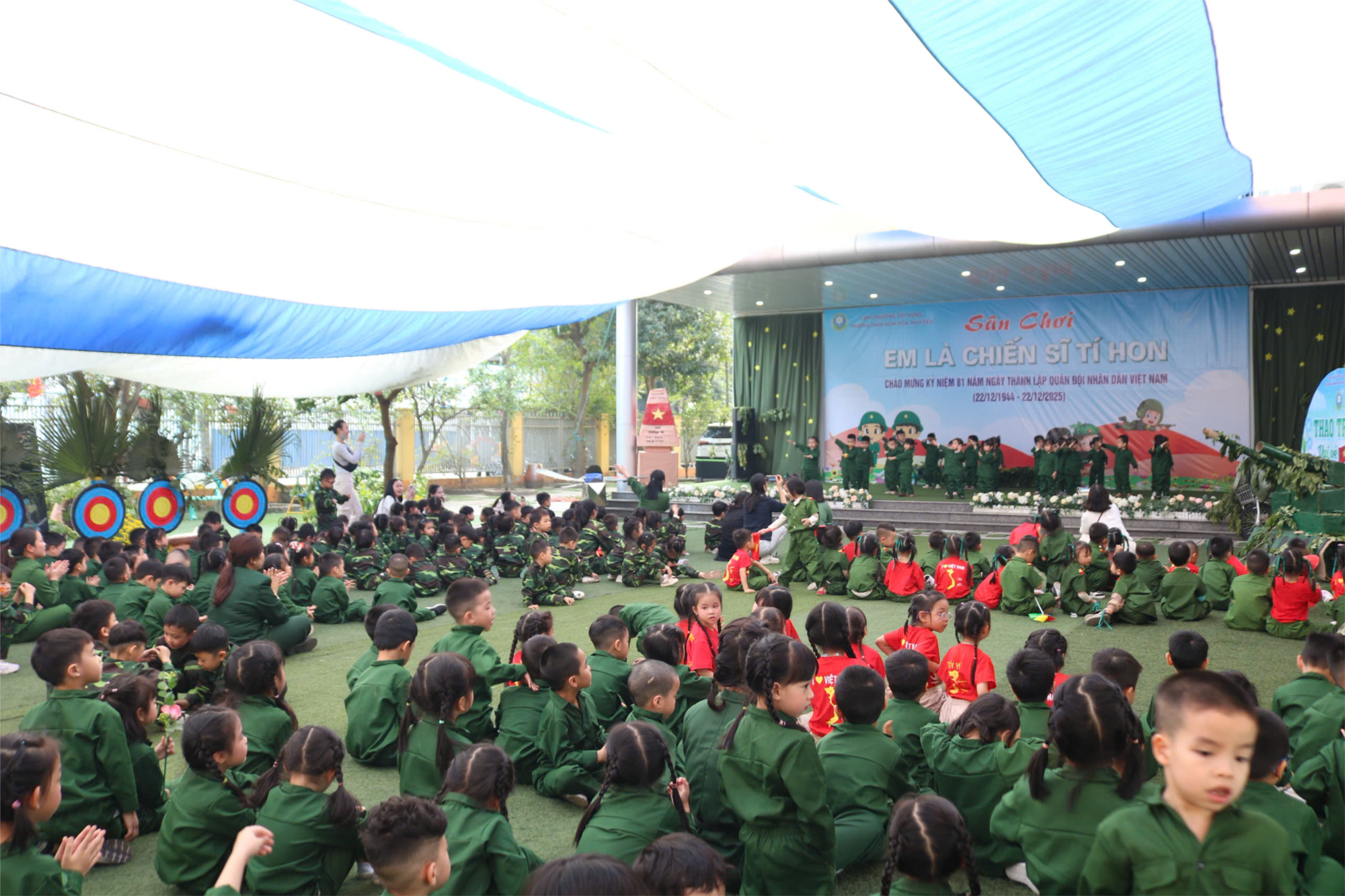 Hoà chung không khí chào mừng kỷ niệm 81 năm Ngày thành lập Quân đội nhân dân Việt Nam (22/12/1944 - 22/12/2015), ngày 19/12/2025 Trường Mầm non Hoa Thủy Tiên đã tổ chức một sân chơi đặc biệt mang tên “Em là chiến sĩ tí hon” dành cho các bé yêu. Đây là một hoạt động bổ ích, sáng tạo, giúp các bé phát triển thể chất, kỹ năng xã hội và sự sáng tạo qua các trò chơi vui nhộn.
