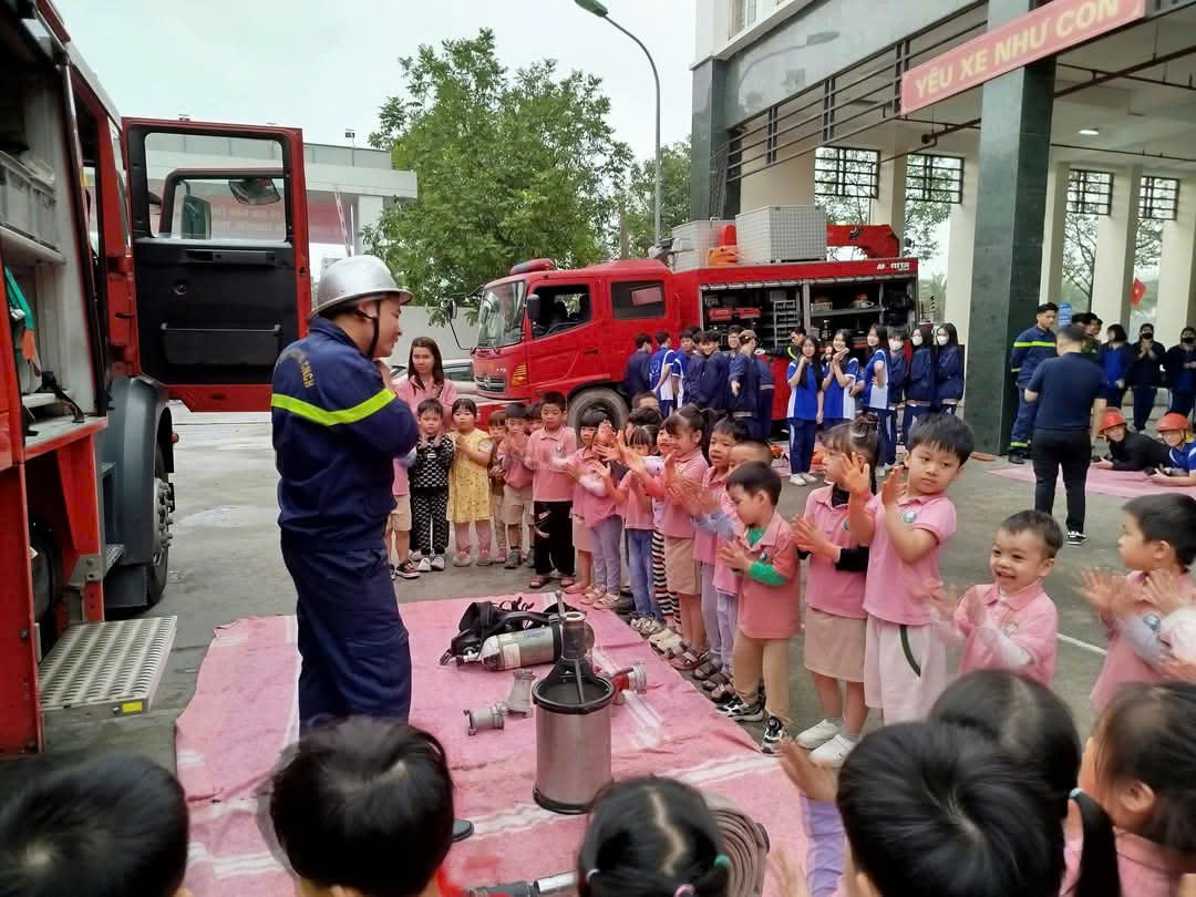 🎊 Tại buổi trải nghiệm, cán bộ, giáo viên và học sinh trong nhà trường đã được cán bộ tuyên truyền viên của Công an Thành phố hướng dẫn các biện pháp đảm bảo an toàn PCCC và kỹ năng thoát nạn khi có sự cố cháy nổ xảy ra; Giới thiệu, hướng dẫn và thực hành các phương tiện chữa cháy, cứu nạn, cứu hộ.