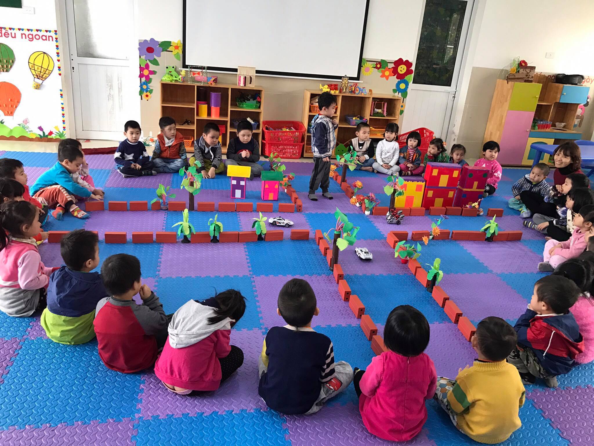 Hình ảnh các bé chơi ở góc xây dựng