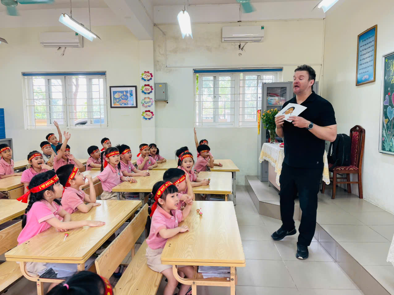 Trong buổi tham quan, các bé được làm quen với môi trường tiểu học, được trải nghiệm môn Tiếng Việt với cô giáo lớp 1,tiết học Tiếng Anh cùng thầy giáo nước ngoài, các bé còn được đọc sách ở thư viện cùng các anh chị lớp 1. Sau đó được tham gia trải nghiệm giờ học thể dục tại phòng thể chất của Nhà trường.