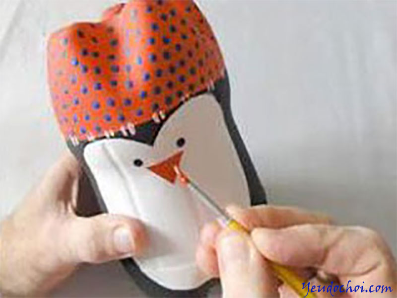 Bước 6: Mẹ dùng vải vụn làm khăn quàng để chú chim thêm sinh động.