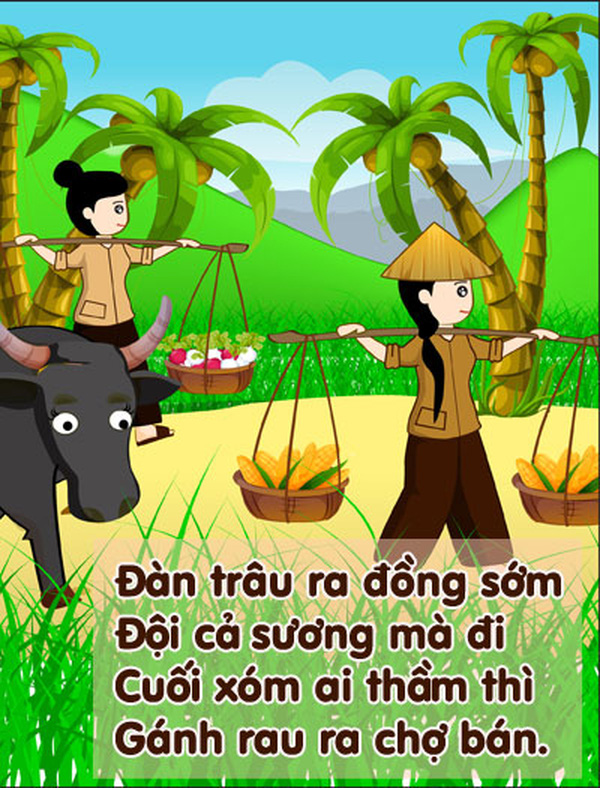 Gánh rau ra chợ bánGà con kêu trong ổ