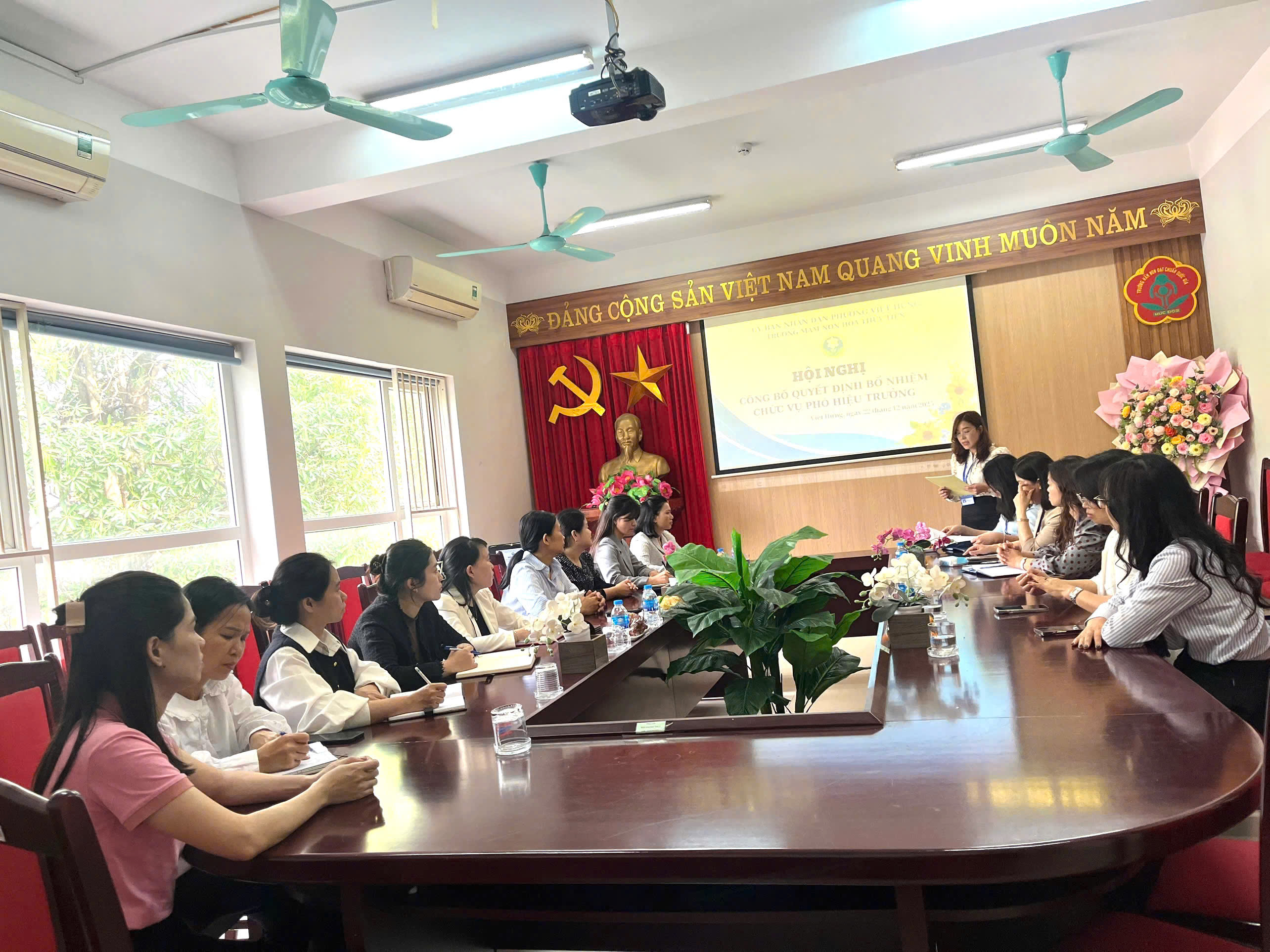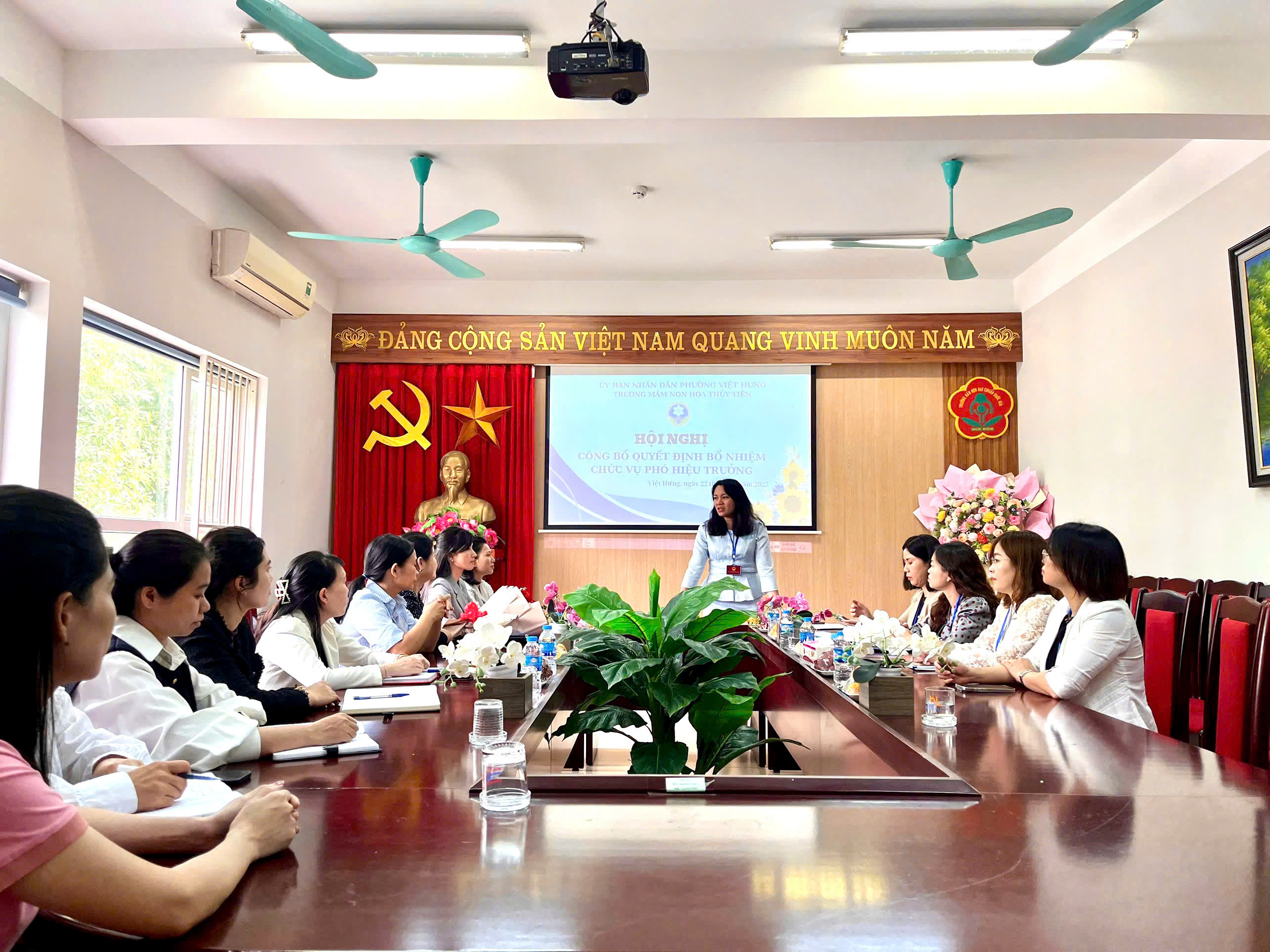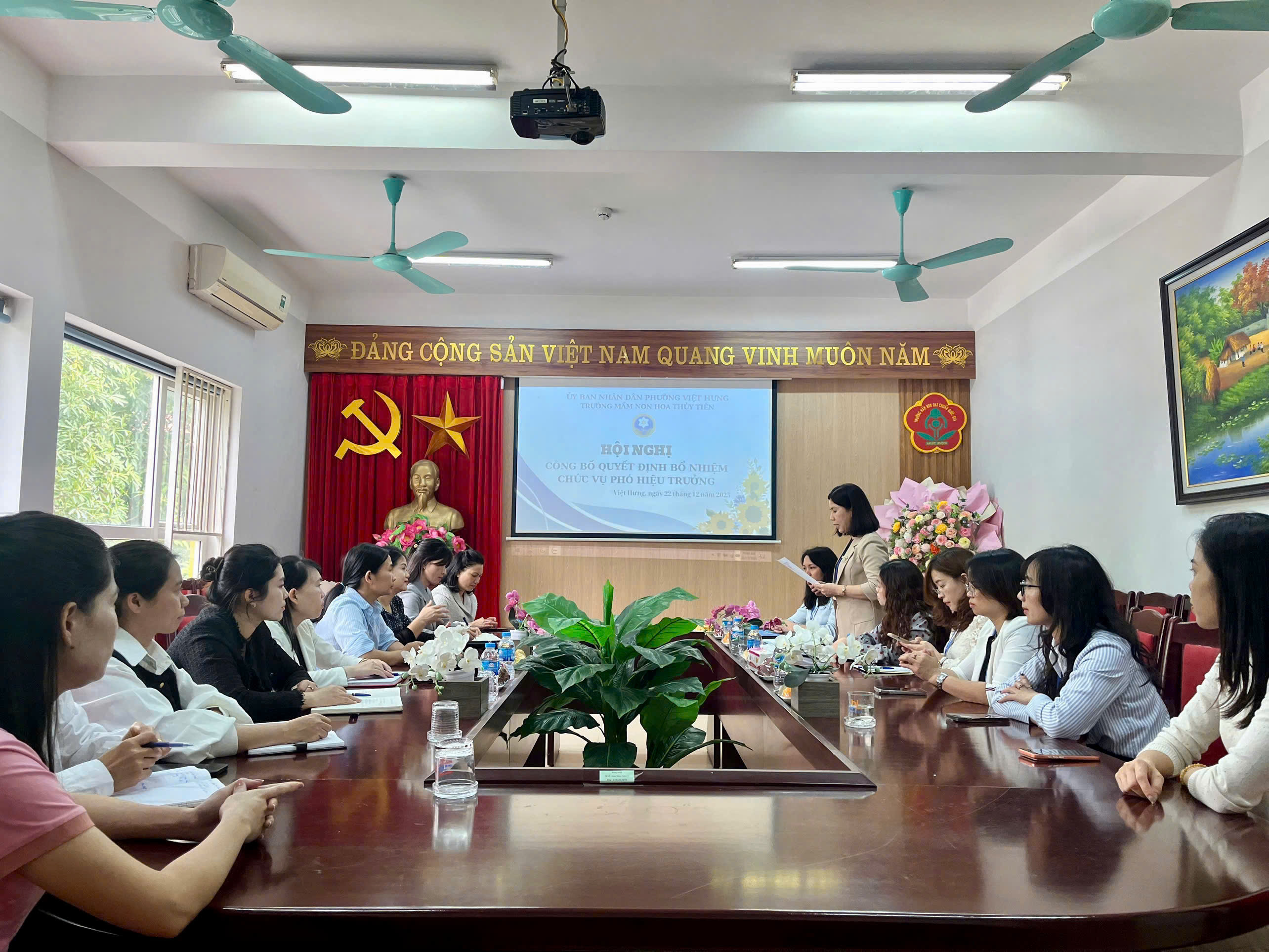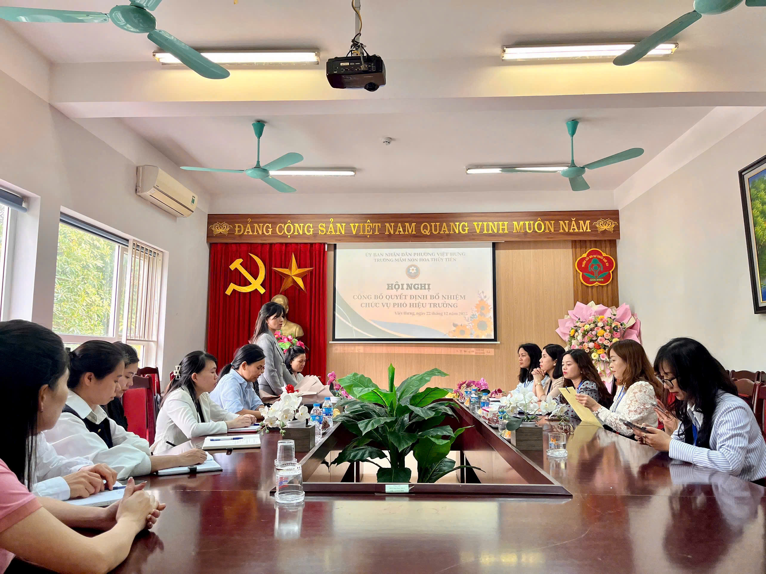Sáng ngày 22/12/2025, tại Trường Mầm non Hoa Thủy Tiên đã long trọng tổ chức Hội nghị công bố Quyết định bổ nhiệm đồng chí Nguyễn Thị Lan giữ chức vụ Phó Hiệu trưởng nhà trường.