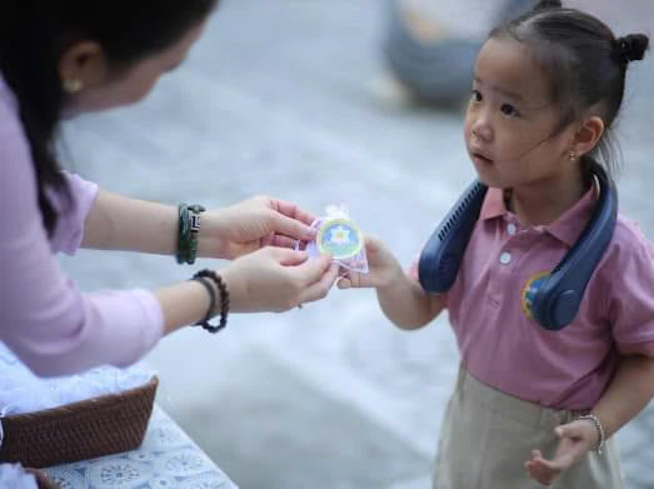 🍀 Đặc biệt, mỗi bé nhận được một món quà hết sức ý nghĩa của nhà trường, đó là một túi hạt giống và một chiếc cốc xinh xinh với logo mang thông điệp "Ươm mầm hạnh phúc" để các bé cùng gieo mầm những niềm vui, niềm hạnh phúc và những ước mơ trẻ thơ của mình trong ngày đầu năm học mới.
