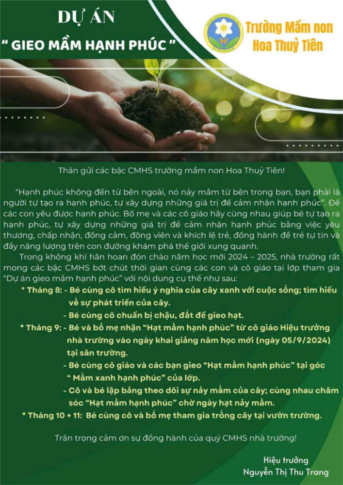 🌱 Hạt mầm hạnh phúc không tự có mà bạn phải tự tay reo trồng và chăm sóc. Các bạn nhỏ đã sẵn sàng bắt đầu hành trình ươm mầm và đi tìm hạnh phúc trong khu vườn Hoa Thuỷ Tiên xinh đẹp chưa nào????! 🍀🍀🍀