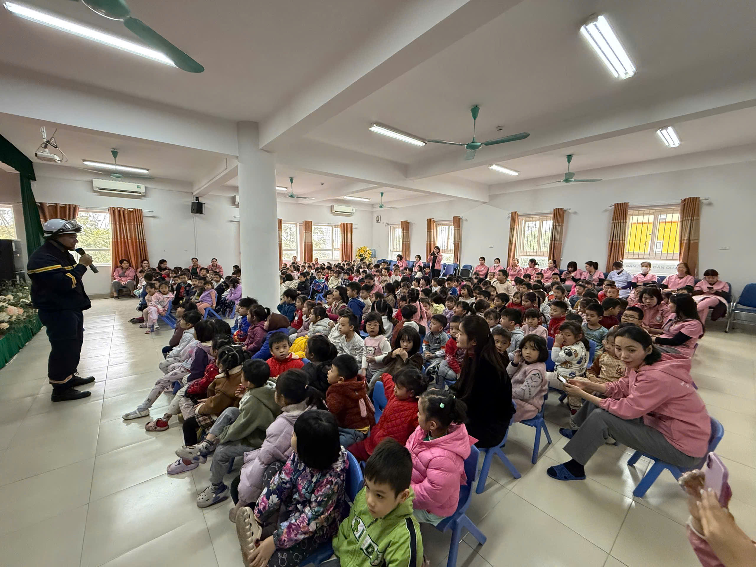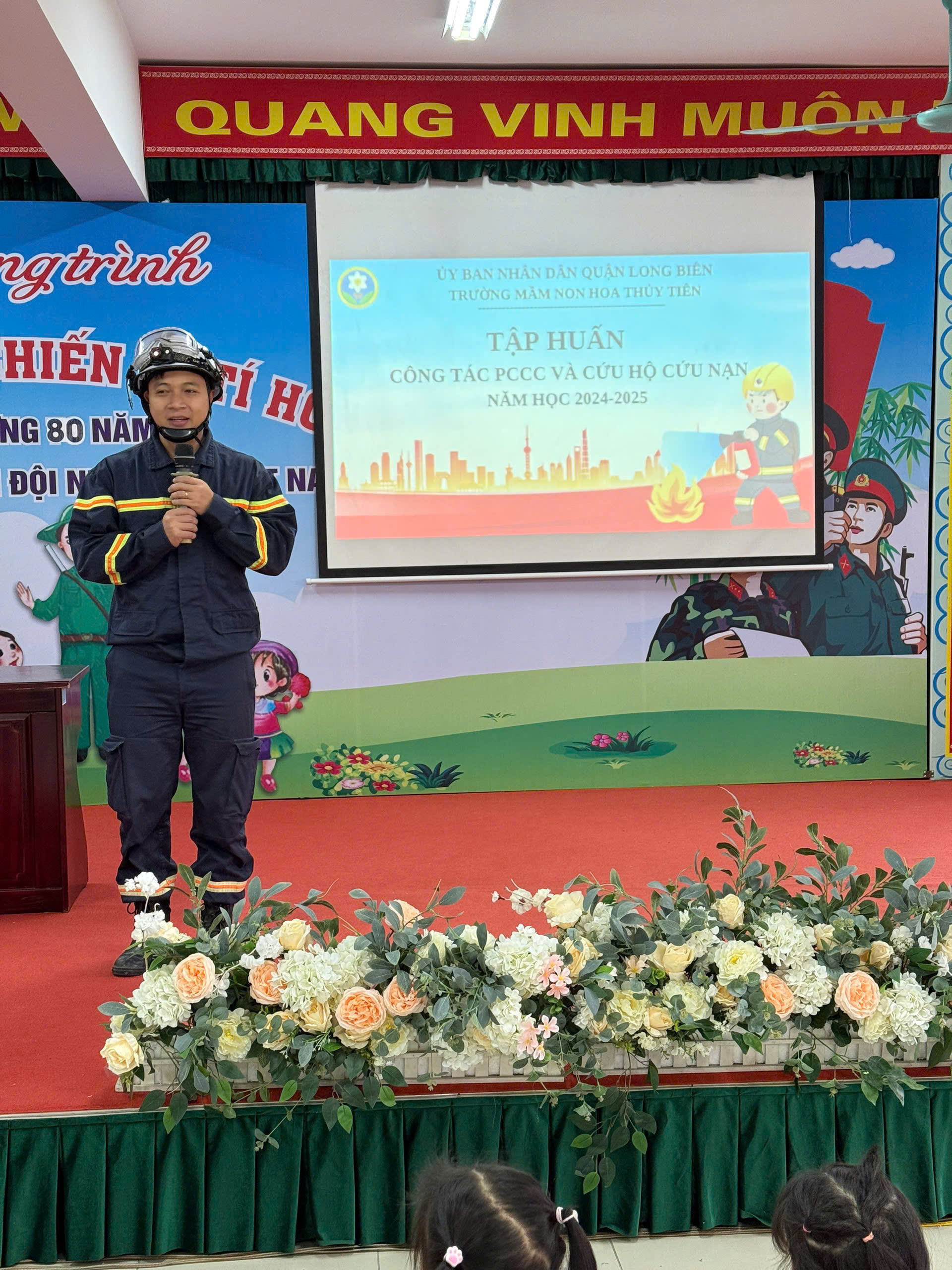 🔥 Phòng cháy chữa cháy, cứu nạn cứu hộ là một trong những nội dung quan trọng hàng đầu trong công tác chăm sóc giáo dục tại Trường mầm non Hoa Thuỷ Tiên. bởi vậy hằng năm BGH nhà trường luôn phối hợp với công an PCCC quận Long Biên Tổ chức tập huấn cho CBGV-NV và học sinh tại trường.
