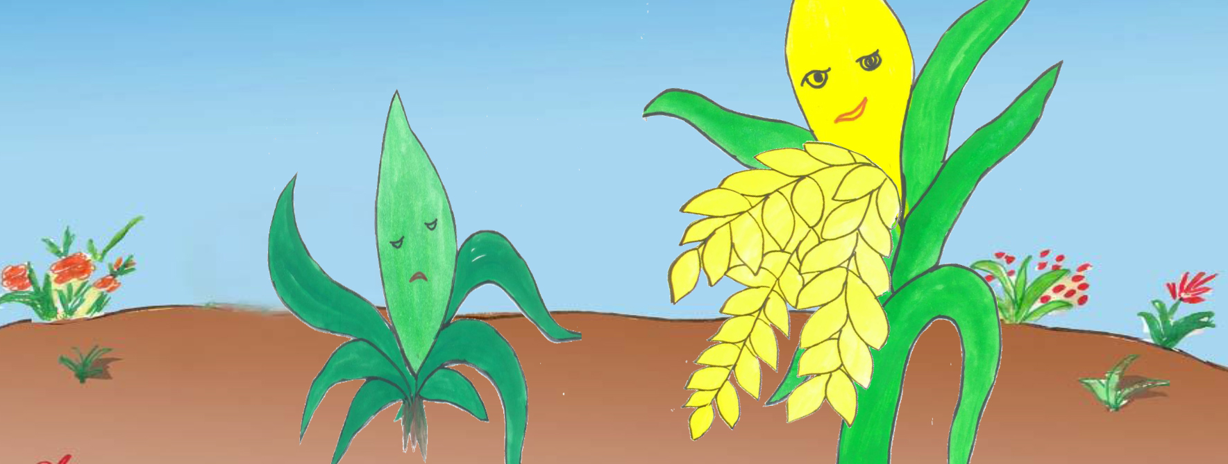 Ngày xưa cỏ và lúa là con cùng một mẹ. Khi lớn lên, mẹ cho cỏ và lúa ở riêng mỗi người một cánh đồng.