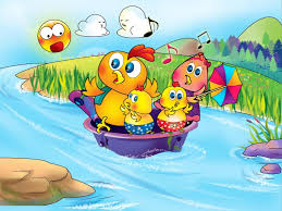 Dòng suối cứ chảy mãi, chảy mãi, nước tung những bọt trắng xóa hai bên cạnh thuyền. Thuyền cứ trôi, trôi mãi. Các thủy thủ tí hon vui mừng hát vang bài ca của họ nhà gà. Bỗng, nước đẩy mạnh và bất ngờ hất tung cái chậu vào tảng đá nhọn. Chậu thủng một lỗ, nước ùa vào.