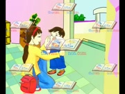 Cô giáo càng dỗ dành, an ủi, Bé Huy càng khóc to hơn. Các bạn xúm quanh cu ki, một bạn trai đưa đồ chơi cho cu ki, Bé Huy lắc đầu. Một bạn gái chìa cho Bé Huy chiếc kẹo màu xanh, Bé Huy vẫn lắc đầu. Bé Huy tiếp tục khóc thổn thức. Bỗng một cô bé có chiếc nơ đỏ trên bím tóc nói: